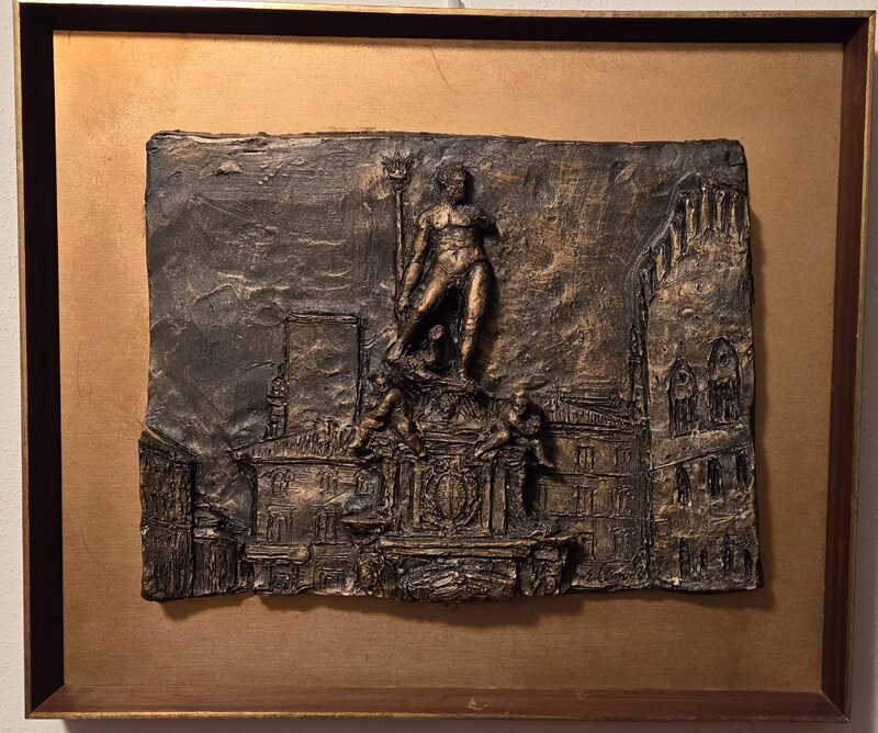 L’opera ha un carattere molto piacevole: unisce il gusto per il monumento storico, la materia scultorea e una presentazione elegante, quasi teatrale, grazie al contrasto tra il rilievo scuro e il fondo caldo della cornice. Non colpisce tanto per raffinatezza analitica, quanto per presenza scenica e forza evocativa. È il tipo di pezzo che funziona molto bene in interno perché suggerisce memoria, città, storia e monumentalità